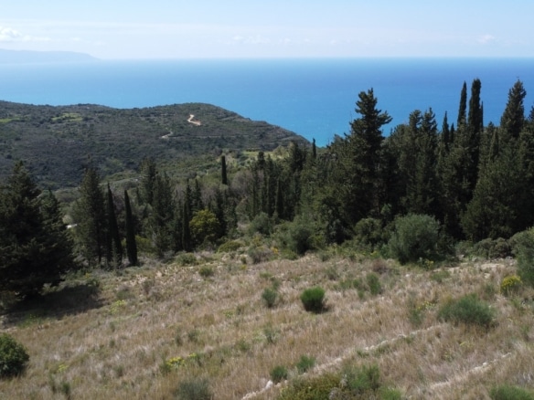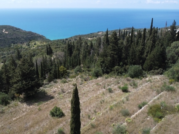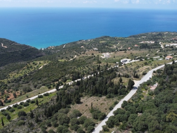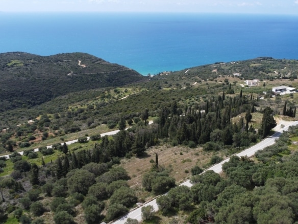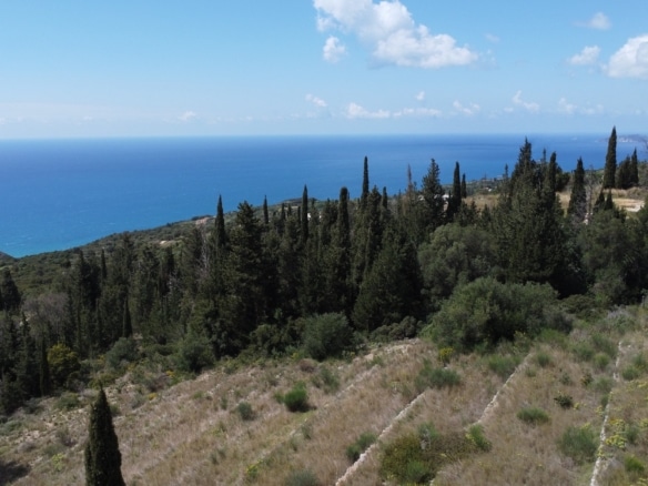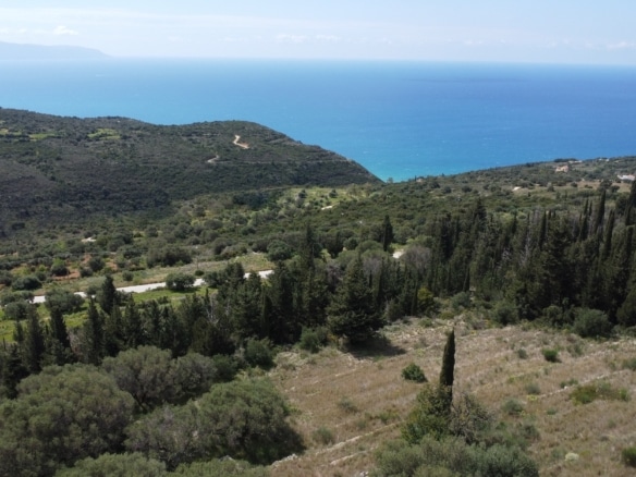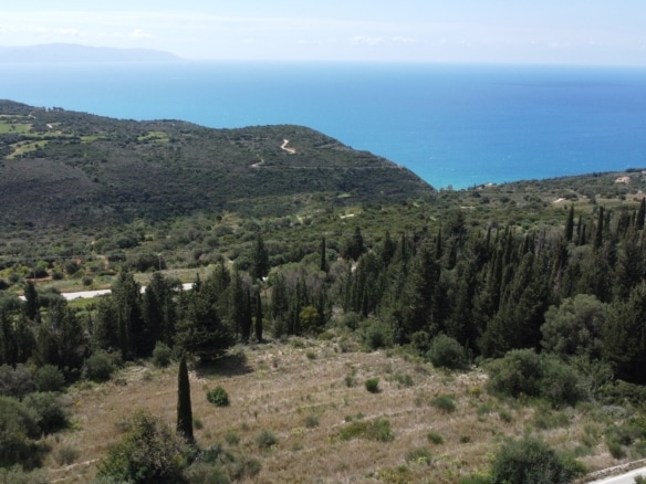 Imagine owning a piece of paradise where the sparkling Ionian Sea stretches before you, framed by lush greenery and charming coastal villages. Nestled in a serene, elevated position in the picturesque village of