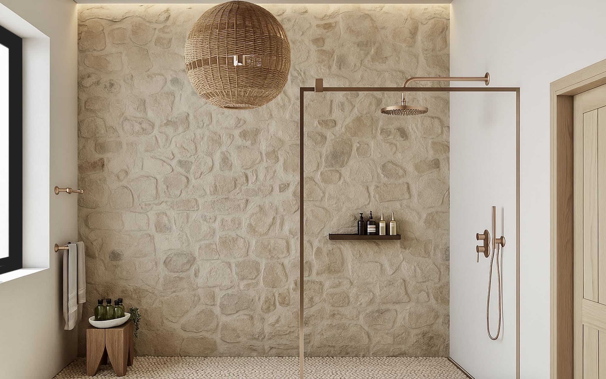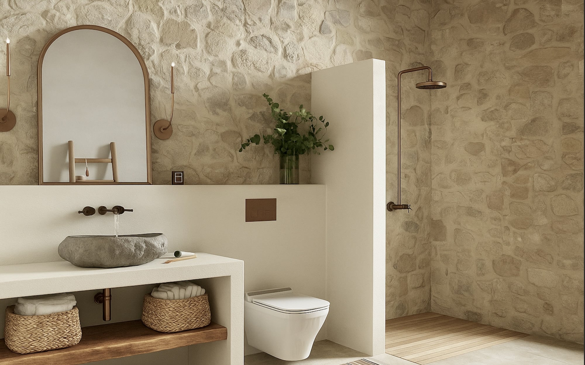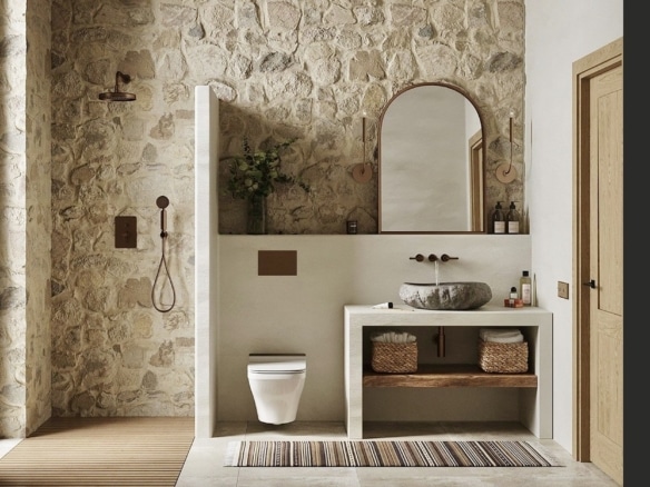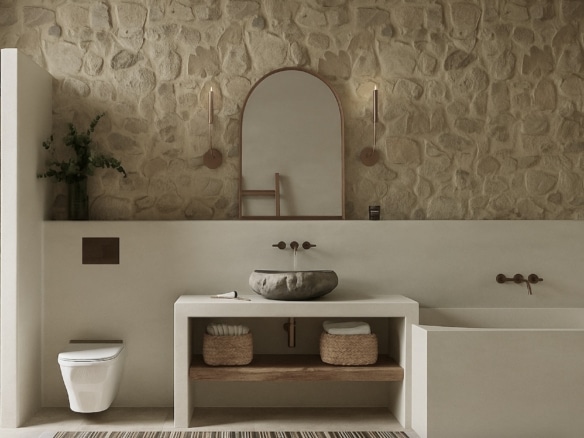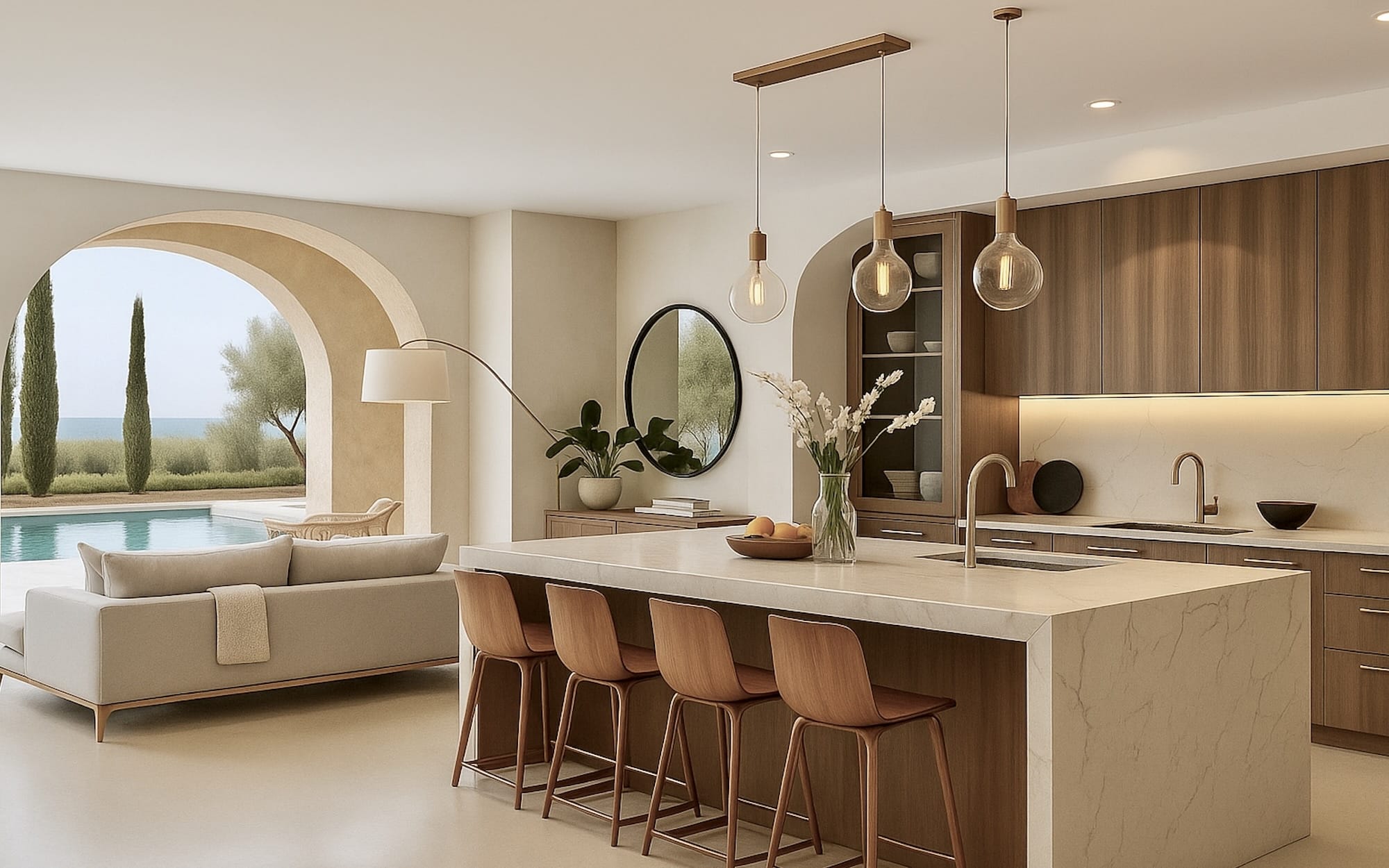 Step inside Ionessa, where each room tells a story of island living. Whitewashed walls, arched doorways, and hand-laid stone floors set the tone for a breezy, coastal interior. The open-plan living and dining space features exposed wooden beams, custom furnishings, and sliding glass doors that blur the lines between indoor comfort and outdoor beauty.